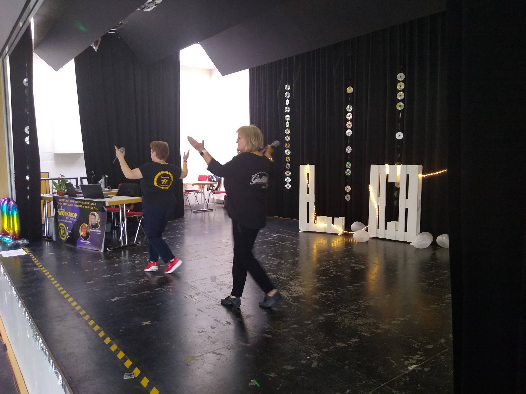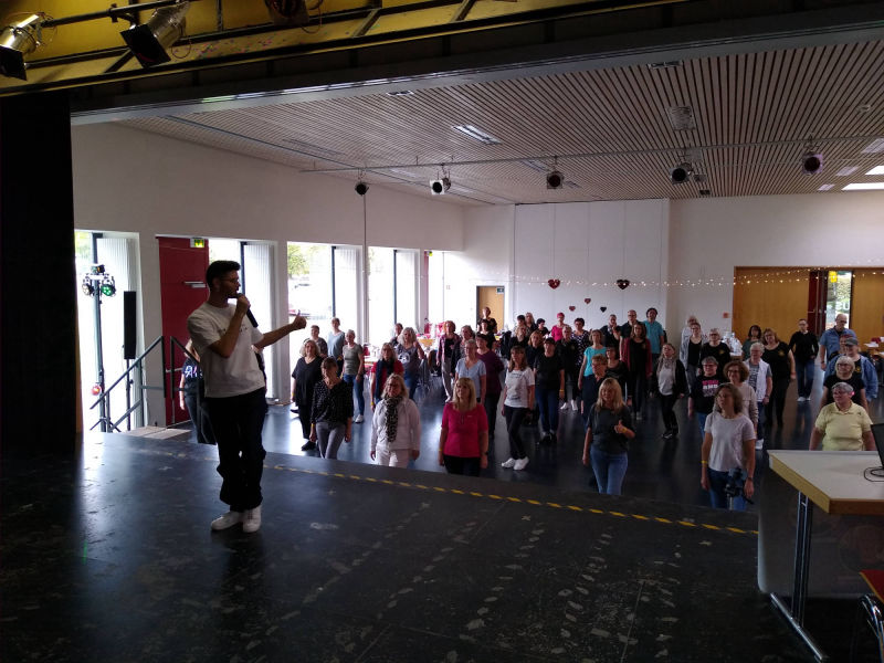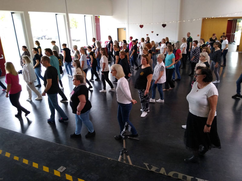 Choreograph Gudrun Schneider tanzt mit der Gruppe